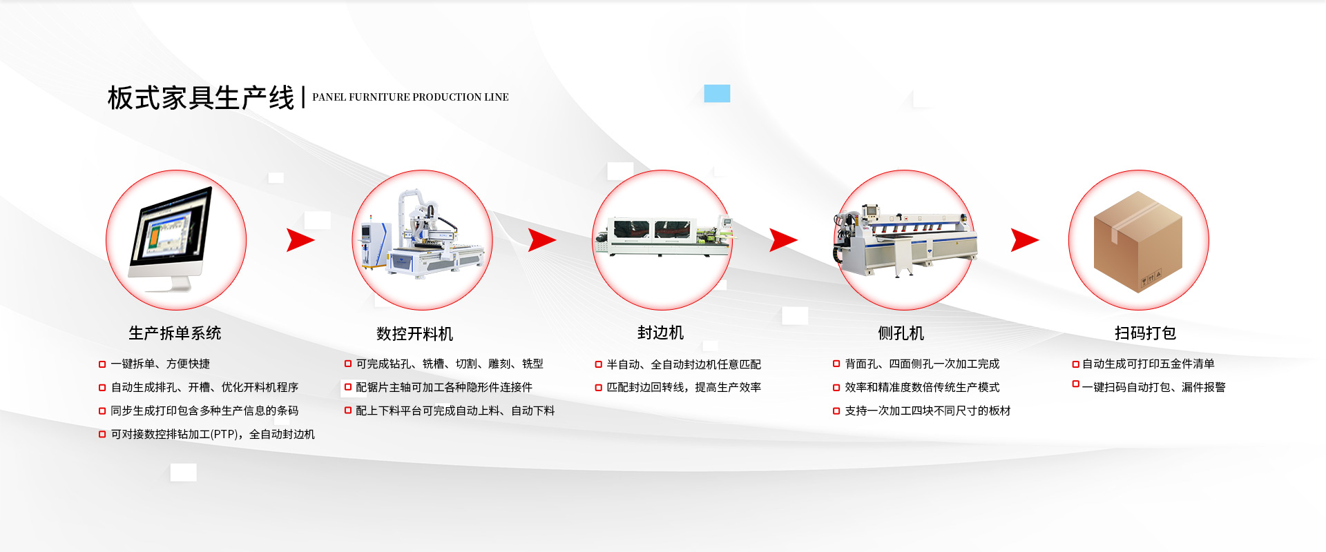 全自動(dòng)開(kāi)料機(jī)作為數(shù)控智能化加工設(shè)備,在加工效率提升、加工質(zhì)量提高等方面做出了很大的改變,憑借這些優(yōu)勢(shì),在市場(chǎng)上深受廣大客戶(hù)的喜愛(ài)和歡迎... 閱讀詳情 >>板式家具廠(chǎng)要打造工業(yè)4.0的生產(chǎn)線(xiàn),就要將開(kāi)料、封邊、鉆孔、分揀、包裝等流程實(shí)現(xiàn)自動(dòng)化、流水化。 >>